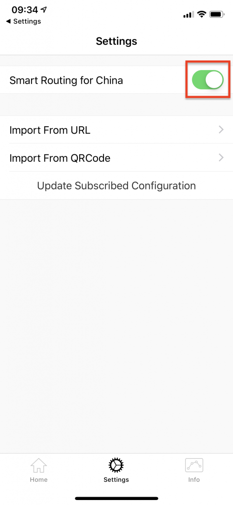 If you're in China, you may want to enable the Smart Routing option. This improves performance for WeChat, Taobao and other Chinese apps when in China.